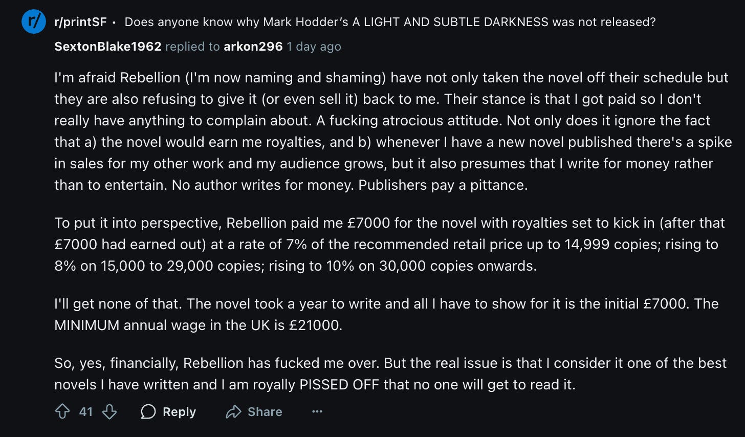 Having a publisher simply forget to publish a book is beyond absurd, but the author himself eventually chimed in on Reddit to explain how incompetent Rebellion is.