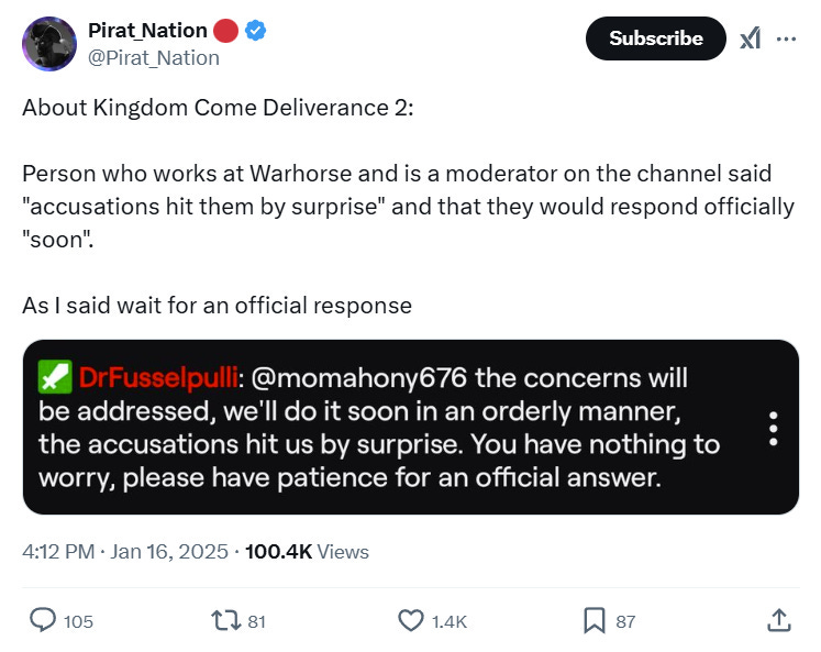 What do you make of this latest report from Insider Gaming and the fact that Kingdom Come: Deliverance’s social media team is now hiding posts?