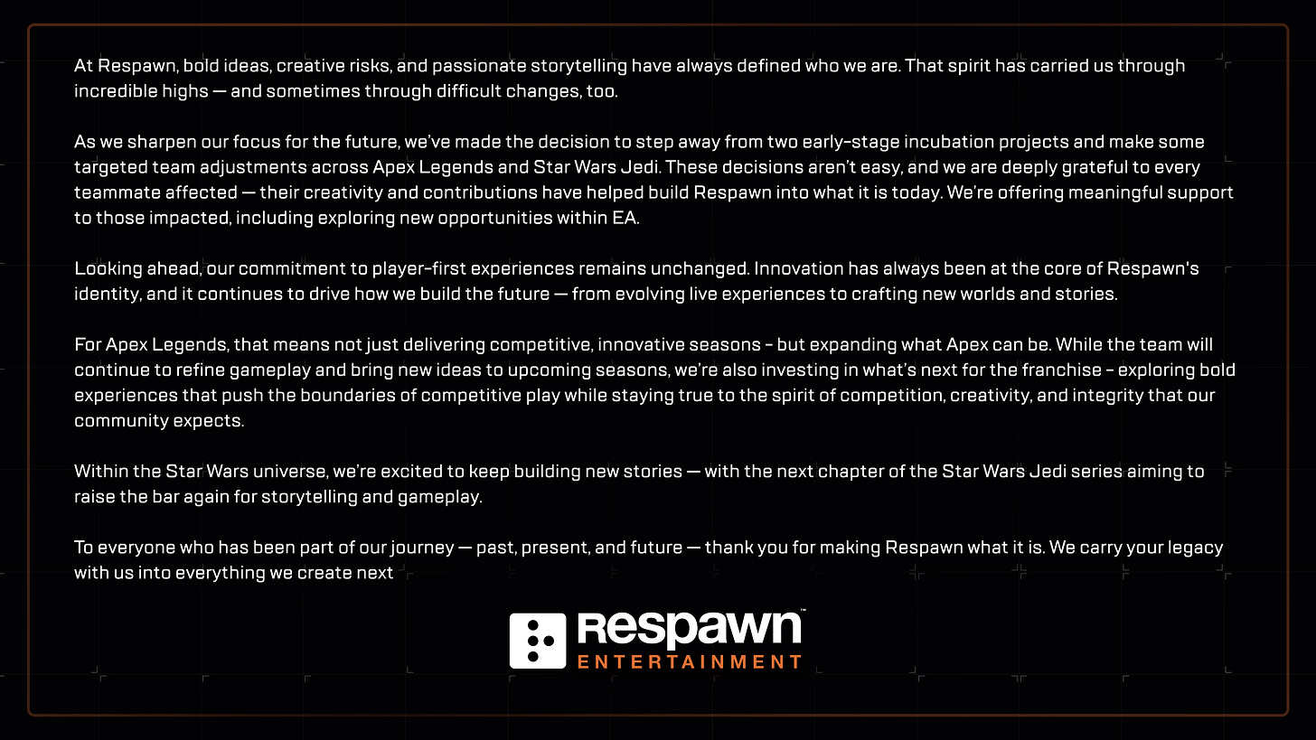 What do you make of Respawn announcing these layoffs and these project cancelations?