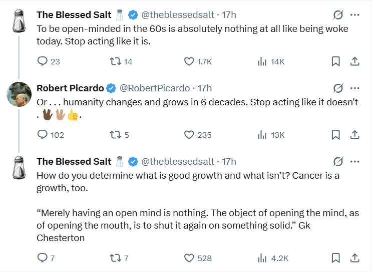 In response numerous fans didn’t even engage with his claim, but utterly rejected. The Blessed Salt quipped, “To be open-minded in the 60s is absolutely nothing at all like being woke today. Stop acting like it is.”
