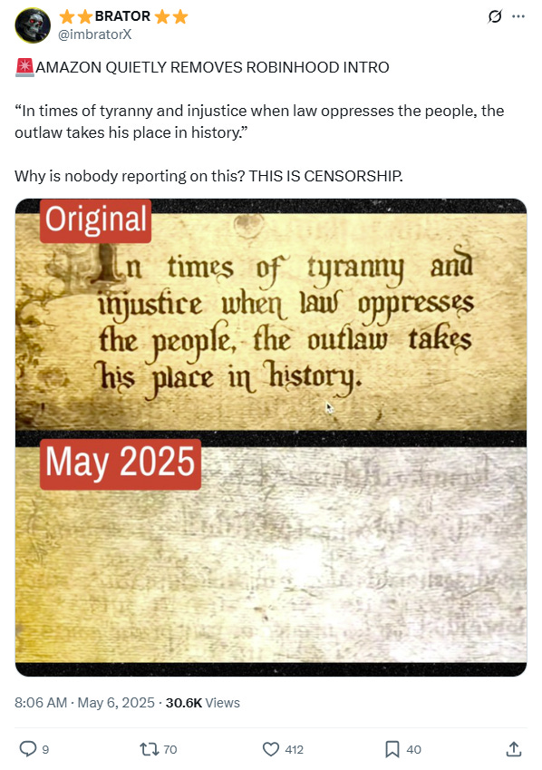 What do you make of this opening text not being shown in Robin Hood?