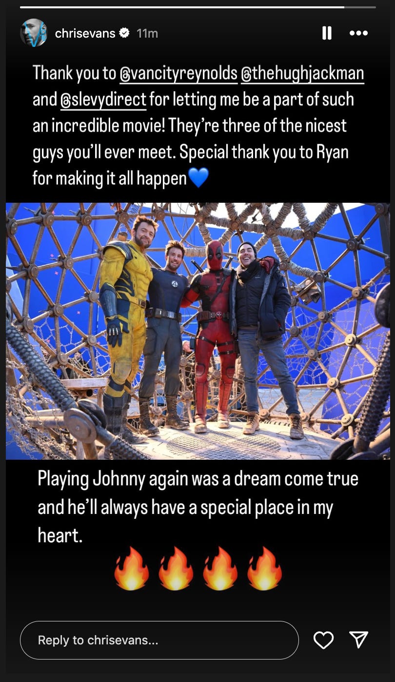Evans played a version of Johnny Storm and the Human Torch in Deadpool & Wolverine.