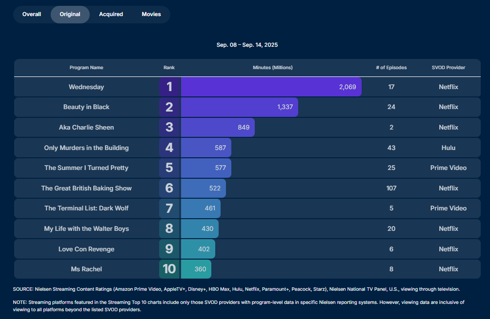 To put that in perspective, Lucasfilm and The Walt Disney Company scrapped The Acolyte because of poor viewership and it had achieved 499 million minutes watched for its 2-episode premiere according to Nielsen.