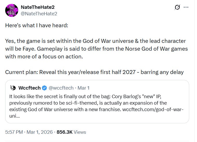 Following this, leaker NateTheHate2 claimed that this new franchise within the God of War universe would be a game with Faye as the lead character.