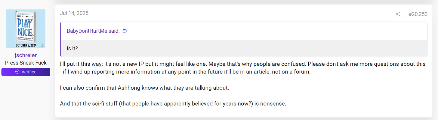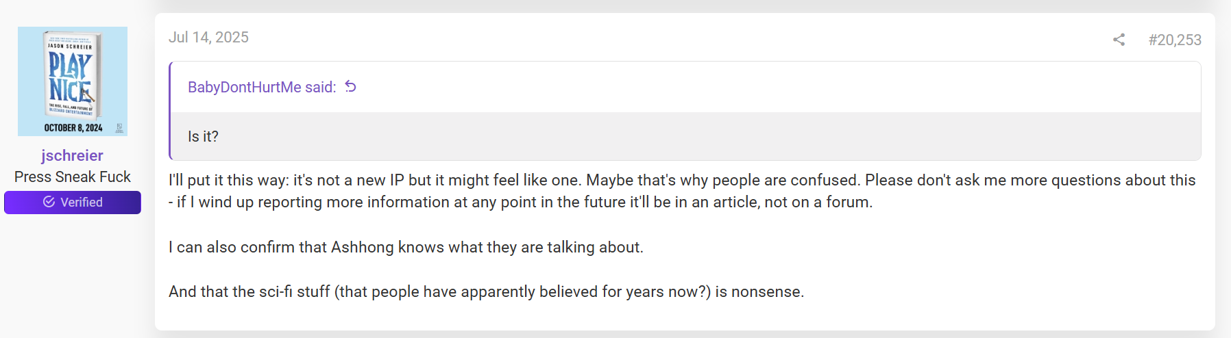 Back in July 2025, Bloomberg reporter Jason Schreier indicated as much in a post to ResetEra. He wrote, “I'll put it this way: it's not a new IP but it might feel like one. Maybe that's why people are confused.”