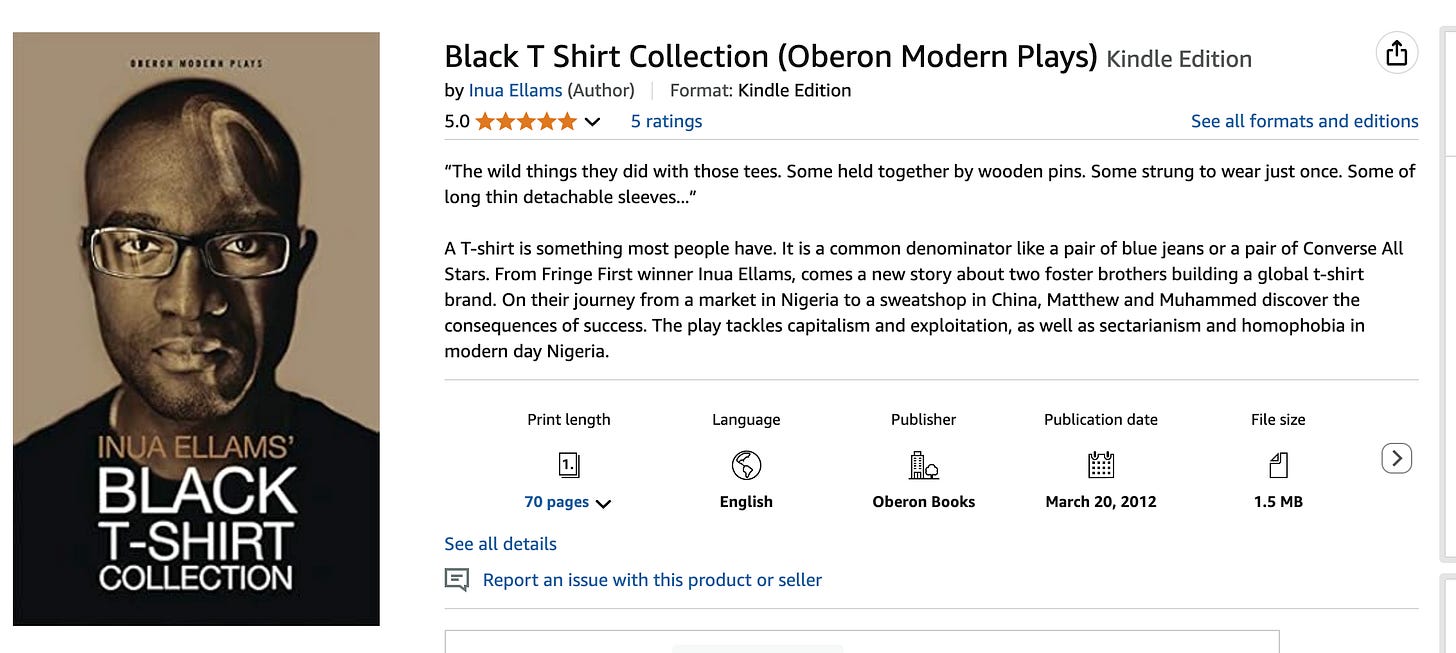 Inua Ellams, like many diversity hires, is often listed in a biography, winning an award no one’s heard of. His collection of plays is titled “Black T-Shirt Collection,” trying to make a play on the word Black immediately. While it’s at the top of Google results with multiple outlets praising it in the news, the Amazon listing only has five ratings, marking another award-winner in literature that no one’s read.