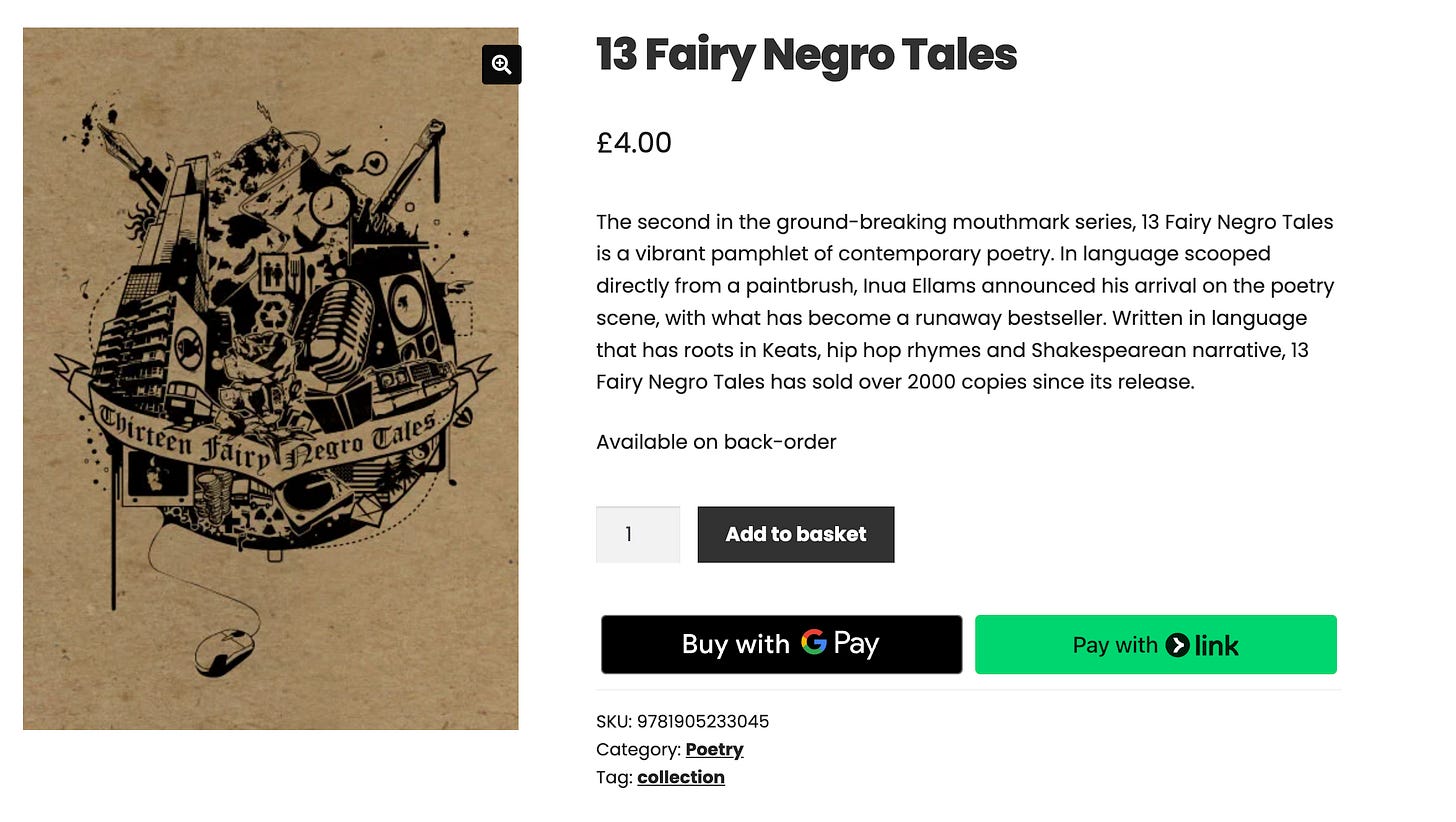 He's also got a woke poetry collection titled “13 Fairy Negro Tales,” which the listing describes as “groundbreaking.” According to Wikipedia, his work explores “masculinity, homosexuality and religion.”