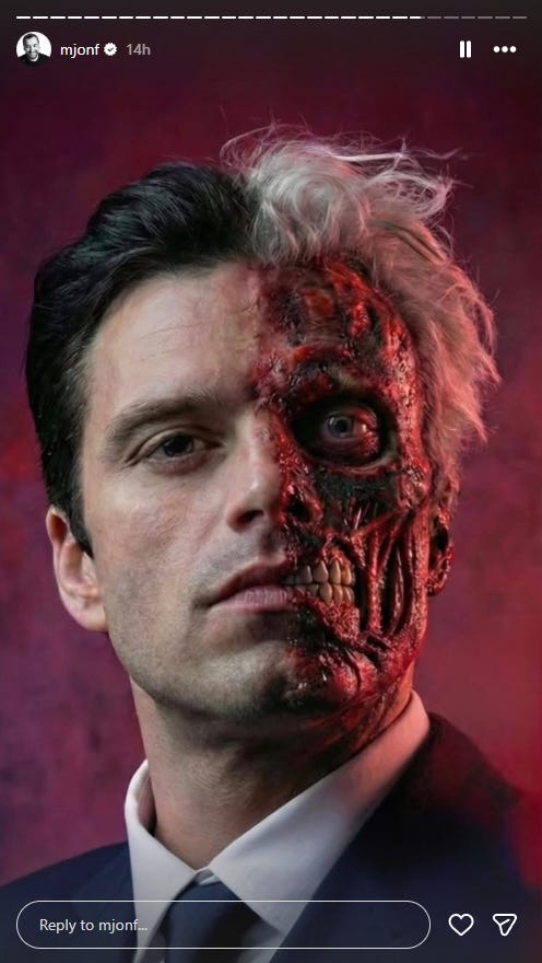Michael Fisher, the stylist for Sebastian Stan, appeared to confirm that the actor will play Two-Face in Matt Reeves upcoming The Batman Part II film.