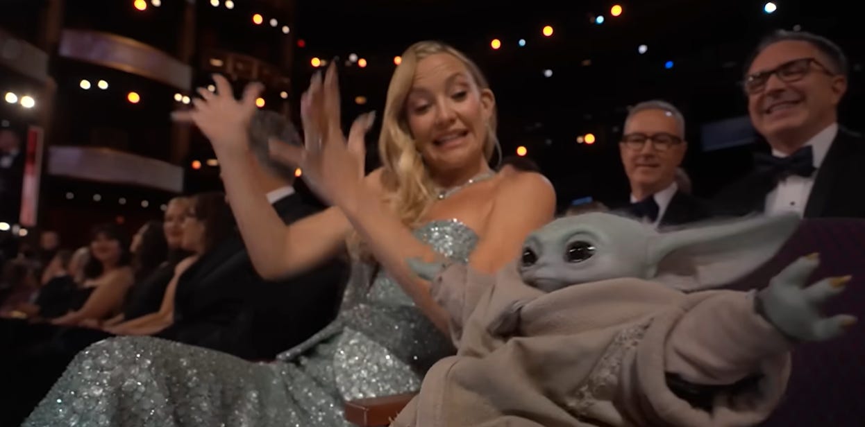 Lucasfilm appeared to pay for an ad at the Oscars that saw Sigourney Weaver curse at Kate Hudson in order to promote the company’s upcoming The Mandalorian & Grogu film.