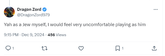 Another posted, “As a Jew myself, I would feel very uncomfortable playing as him.”
