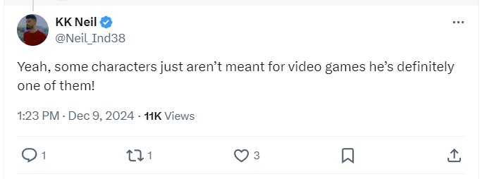 KK Neil added, “Yeah, some characters just aren’t meant for video games he’s definitely one of them!”
