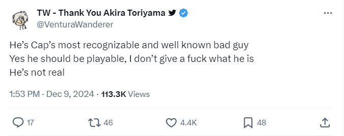 Another wrote, “He’s Cap’s most recognizable and well known bad guy Yes he should be playable, I don’t give a f**k what he is He’s not real.”