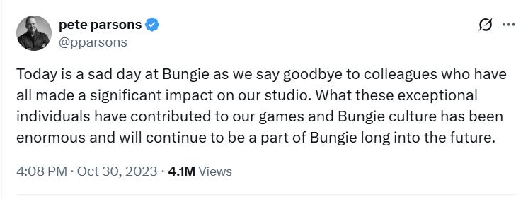 The company’s history since being acquired by Sony in 2022 has been rough. In 2023, Bungie CEO Pete Parsons announced significant layoffs at the company. He posted on X, “Today is a sad day at Bungie as we say goodbye to colleagues who have all made a significant impact on our studio. What these exceptional individuals have contributed to our games and Bungie culture has been enormous and will continue to be a part of Bungie long into the future.”
