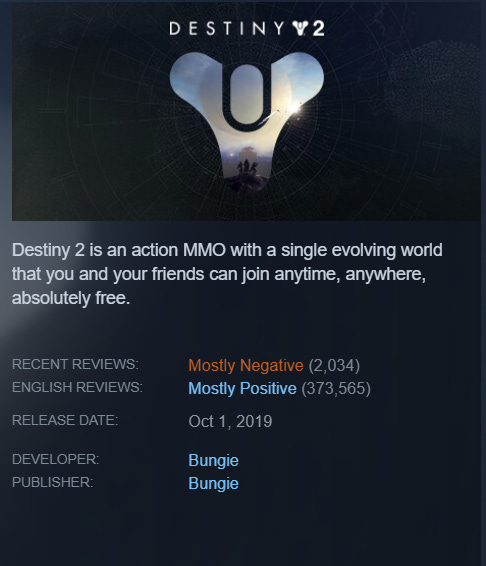 Recent reviews for the game are also “mostly negative” on Steam.