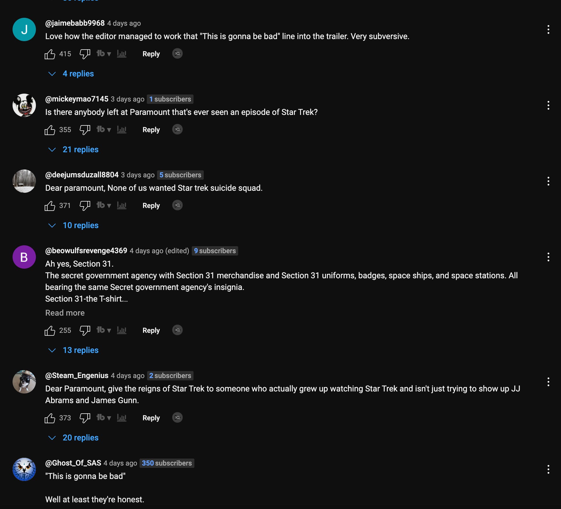 The comments show that fans are not pleased with Alex Kurtzman's new offering. As Paramount has signaled it’s in financial trouble this last year, viewers can’t help but wonder how long expensive Star Trek productions that fail to excite the fanbase can continue to be made.
