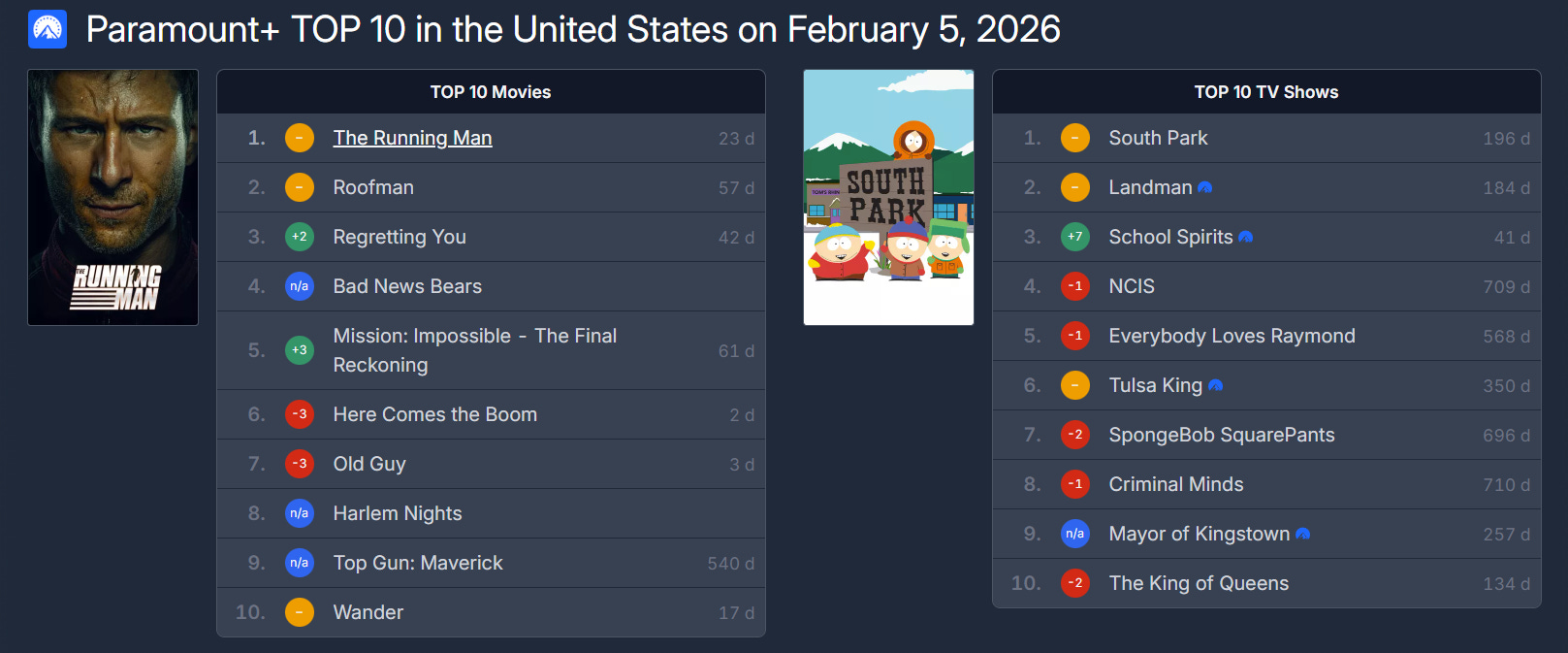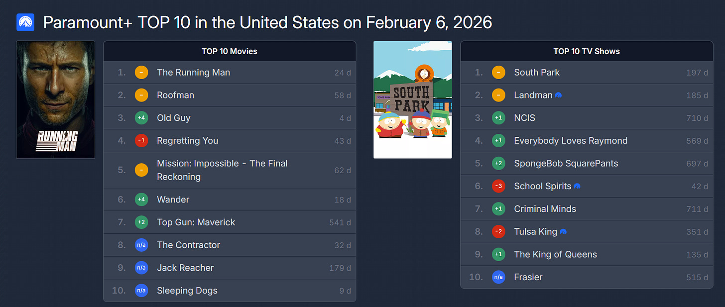 Given the show can’t even chart on the Paramount+ top 10 list it is not surprising that it does not even show up on Luminate’s top 10 charts for the week.