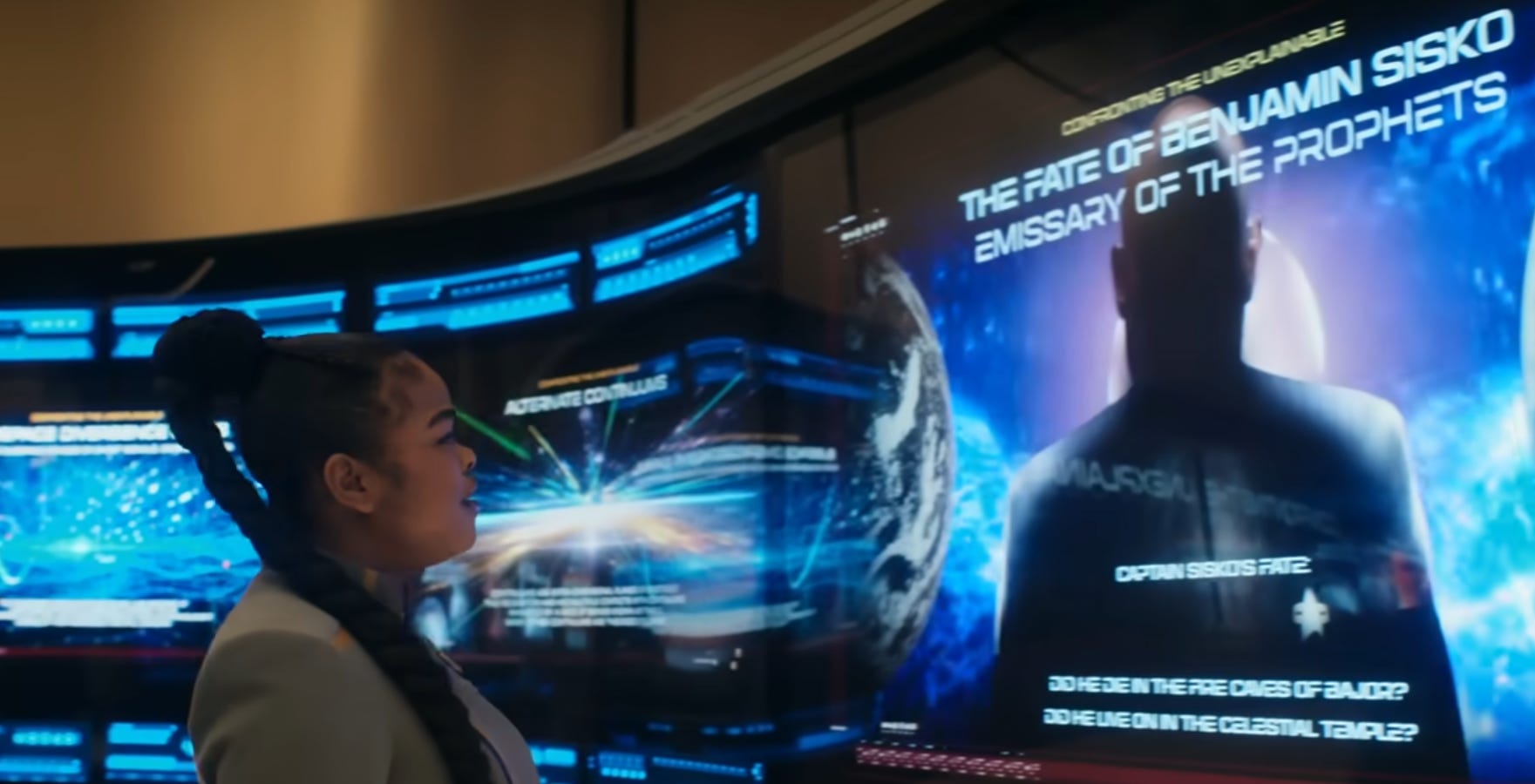 Landau answered in part, “But I think, in the show itself, there’s so many Easter eggs to Trek. One of the ones that really stands out to the fans is Harry Kim being an admiral on the Wall of Heroes. Our atrium is named Sato Atrium. We have Uhura Pavilion. We have so many honors to the people who came before us. And episode 5 is essentially a love letter to Deep Space Nine.”