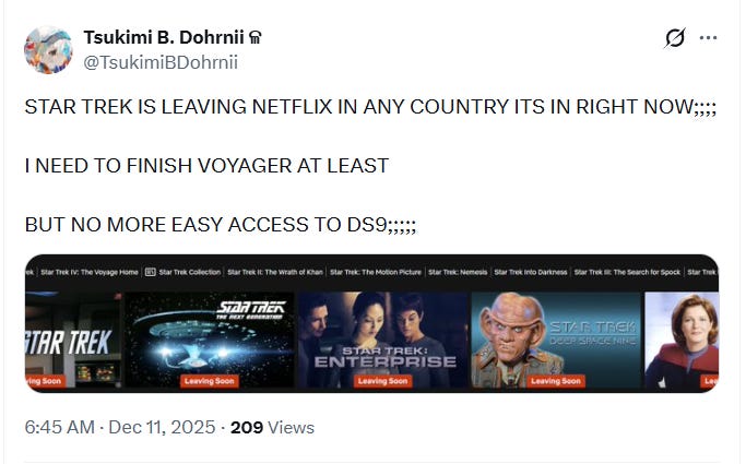The timing is also interesting given that Netflix announced that it is purchasing Warner Bros. while Paramount, the Star Trek parent company, announced a hostile takeover to purchase all of Warner Bros. Discovery.