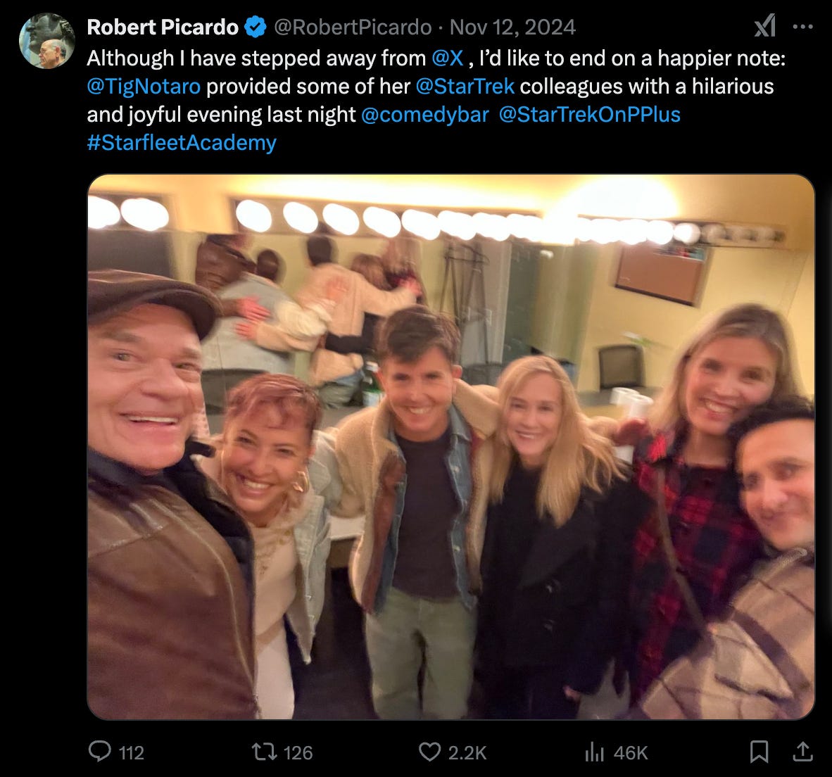 A few days later, he claimed he stepped away from X like many other celebrities who claimed they were going to quit the platform. He posted, “Although I have stepped away from @X , I’d like to end on a happier note: @TigNotaroprovided some of her @StarTrekcolleagues with a hilarious and joyful evening last night @comedybar @StarTrekOnPPlus #StarfleetAcademy