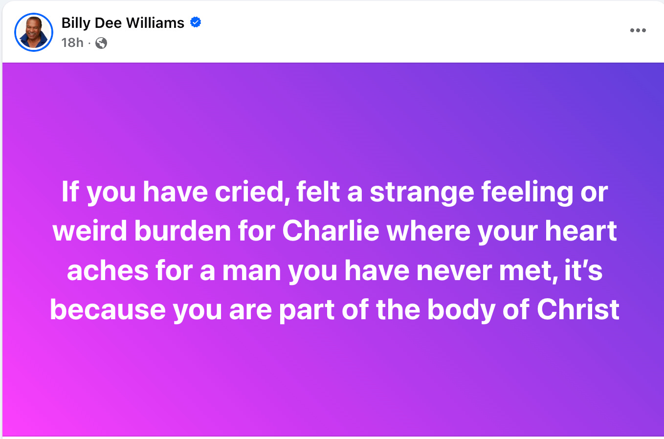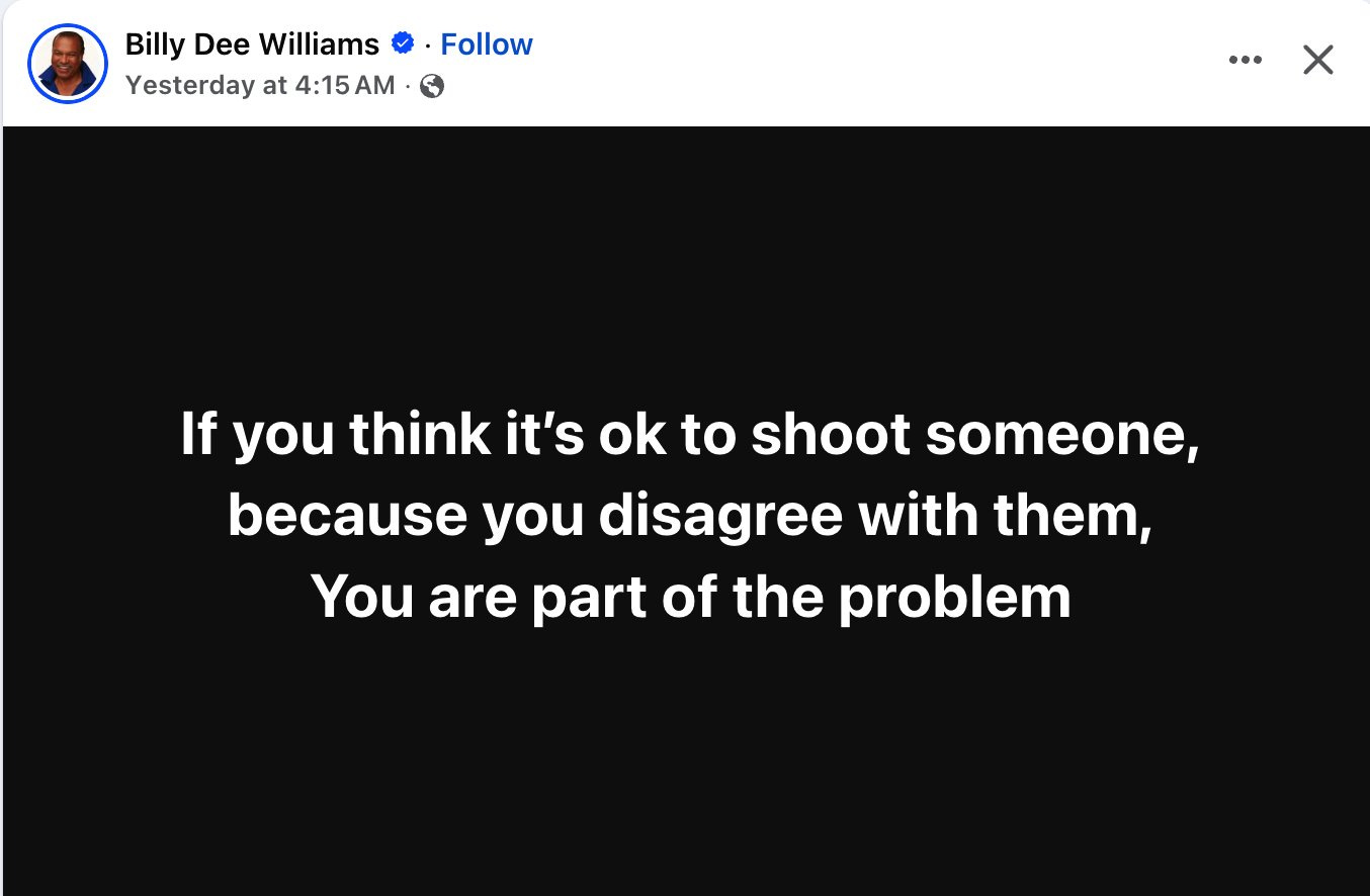 Billy Dee Williams has been posting non-stop about the Charlie Kirk tragedy as most have in culture, but his message is far different than most of Hollywood, he’s actually saying Kirk did great work and that the messaging coming out of Bluesky and elsewhere are evil.