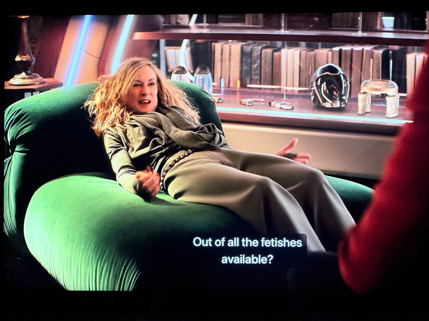 It appears as if this episode’s writer was trying to insert her fantasies into the show, which is pretty strange by itself. This gets compounded a couple of scenes later when Holly Hunter’s chancelor character starts rambling in an official Academy meeting about “fetishes.”