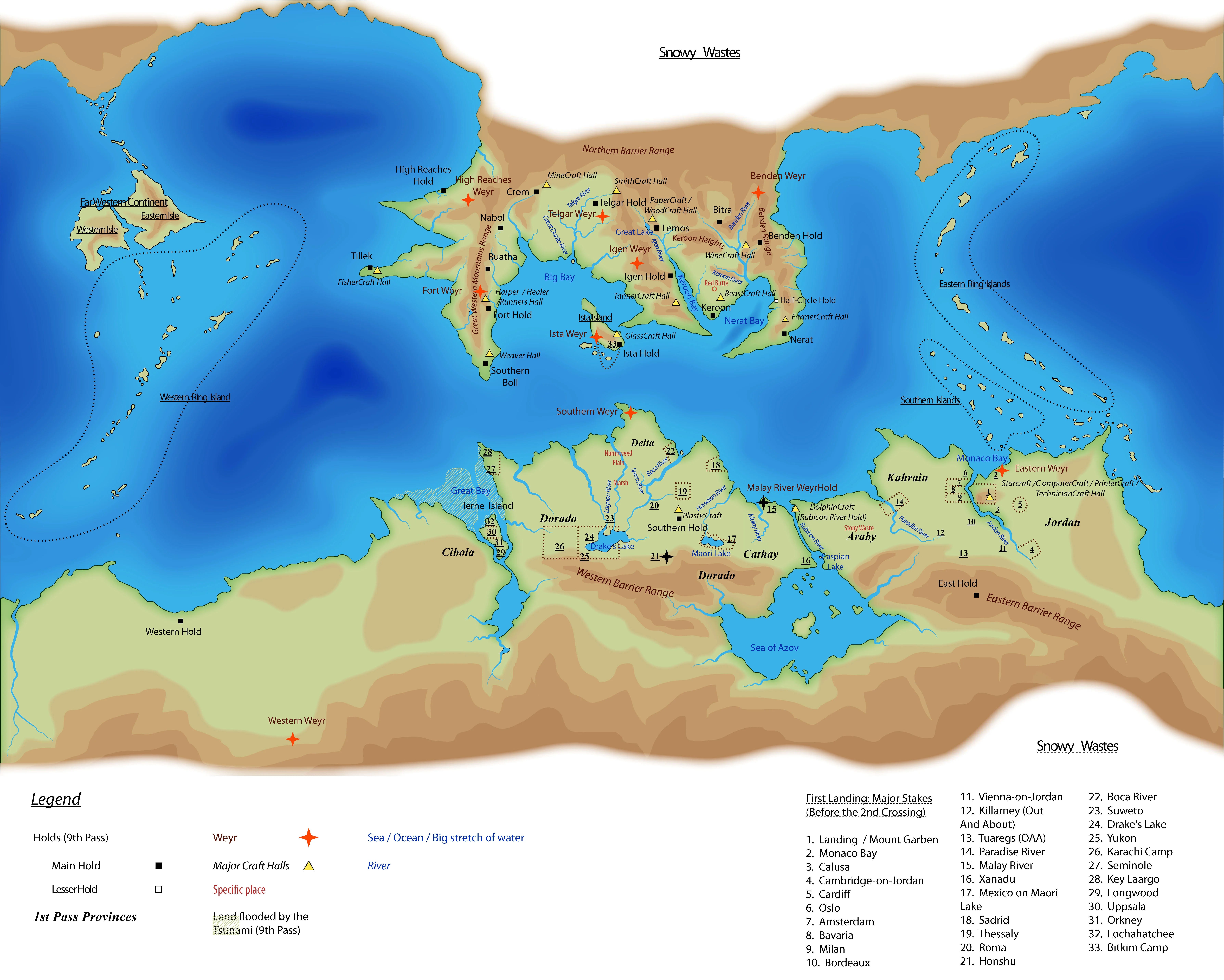 The Guide’s most glaring omission is a comprehensive map of Pern showing all the Holds, Weyrs, and major geographical features as of the Ninth Pass. Individual maps exist in various Pern novels, but a consolidated, detailed map would have been the single most useful reference tool the Guide could provide.