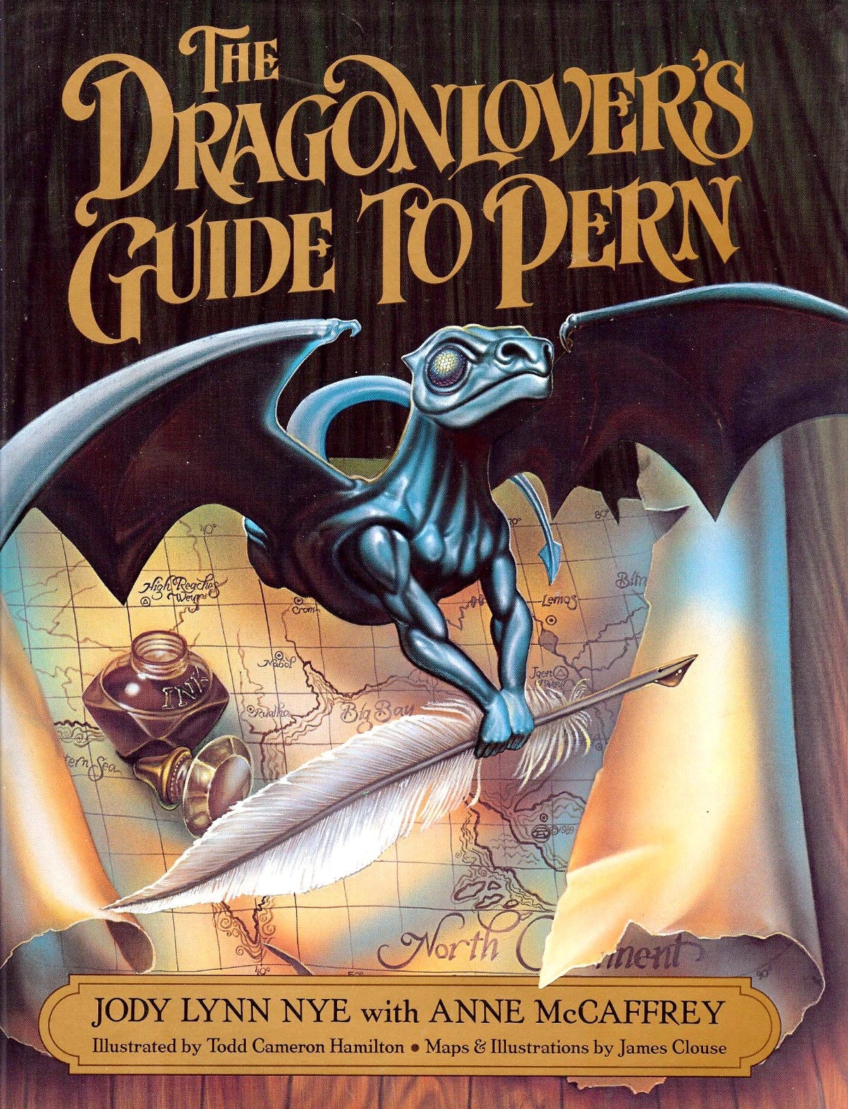 The illustrations throughout the Guide are essential to its value. Todd Cameron Hamilton and James Clouse provided the artwork, and their depictions of Pern’s creatures, landscapes, and technology give the world a visual consistency it didn’t always have in readers’ imaginations.