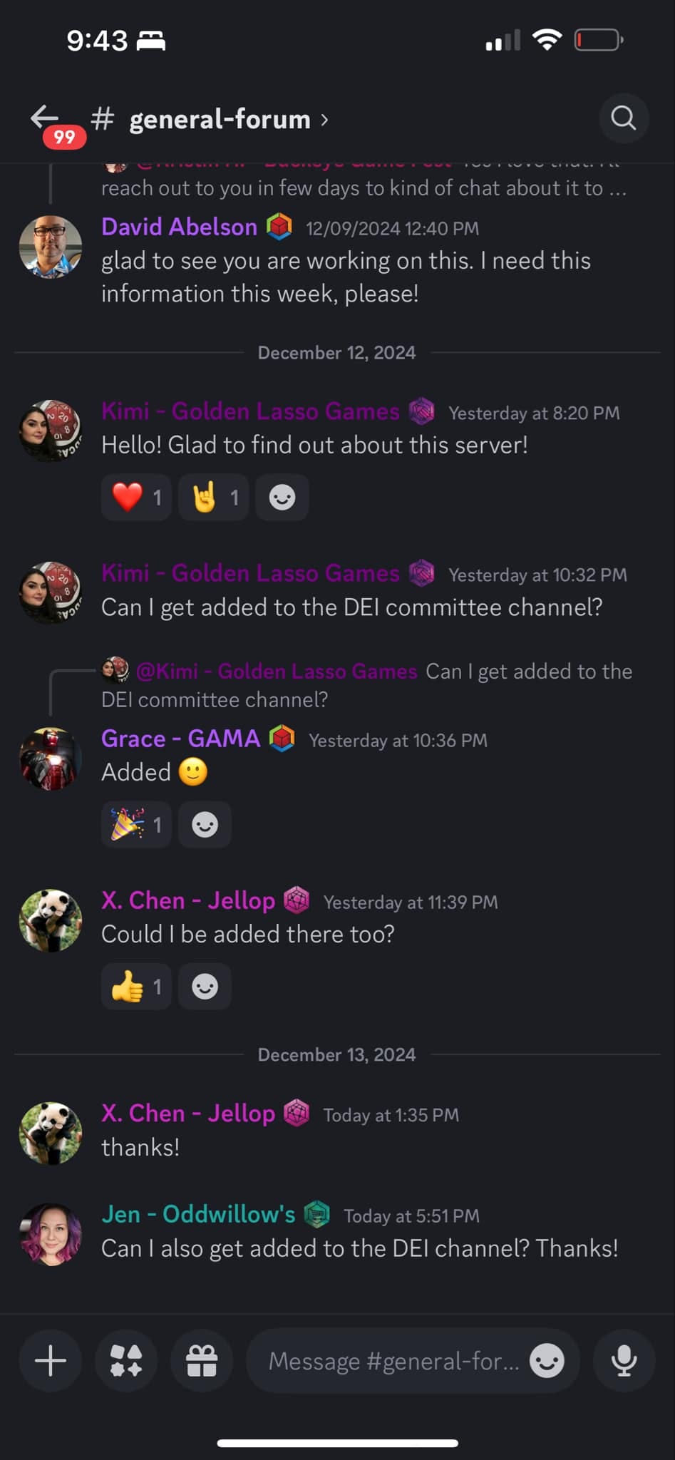 This channel was exposed in the below screenshot, where strange women within the organization virtue signal by asking to join.