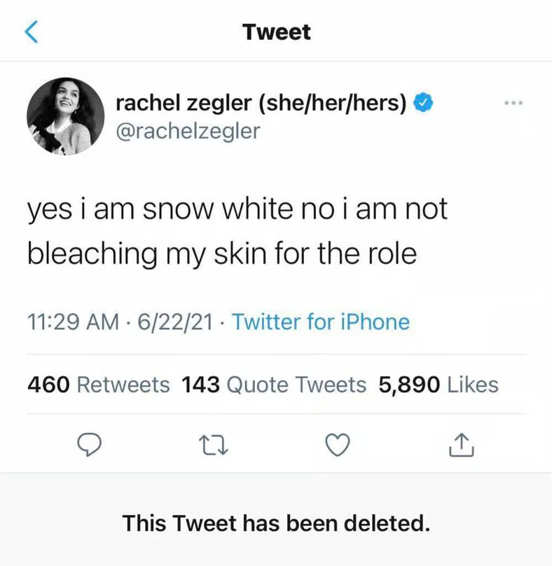 Ironically, Zegler herself admitted she does not accurately depict Snow White given in a now-deleted post on X she wrote, “yes i am snow white no i am no bleaching my skin for the role.”