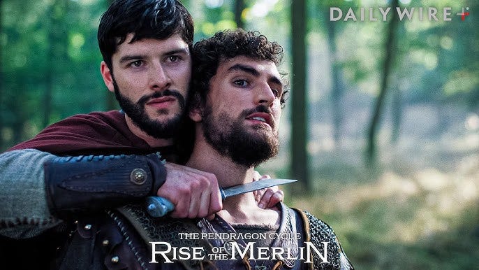 Tom Sharp’s performance as Merlin is charismatic and grounded. He plays the character with quiet certainty, a man who has glimpsed both past and future and understands his role in the unfolding story. The show leans into the Christian elements of Lawhead’s novels with Dafyd’s presence, moments of prayer, the theme of faith triumphing over chaos.