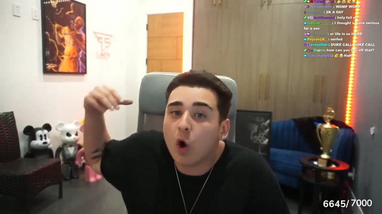 Twitch creator and FaZe clan member Lacy went into a viral meltdown rant about the decrease in his advertising revenue. “My ad revenue went down from $10,000 plus, at some points, a day, to now like $2,000 a day. So from someone who was making upwards of five figures a day, now only making $2,000 a day off ad revenue, something’s wrong. Something’s going on where my ad revenue is not correct, and it’s not what it should be.”