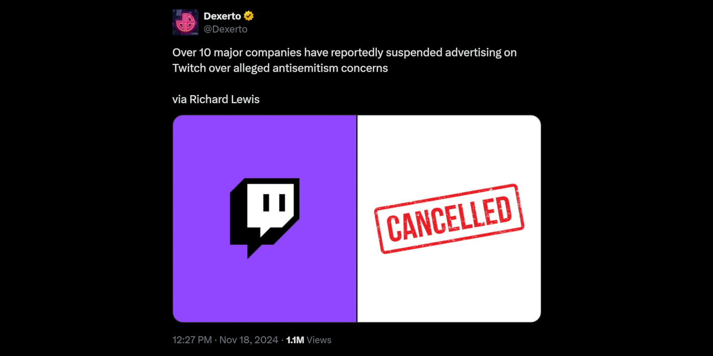 Richard Lewis on Substack broke the news that 11 “significant companies” have ceased advertising on Twitch in the wake of the political controversy. “According to sources familiar with the business dealings of Twitch a number of significant companies have paused their advertising spending with the streaming platform.”