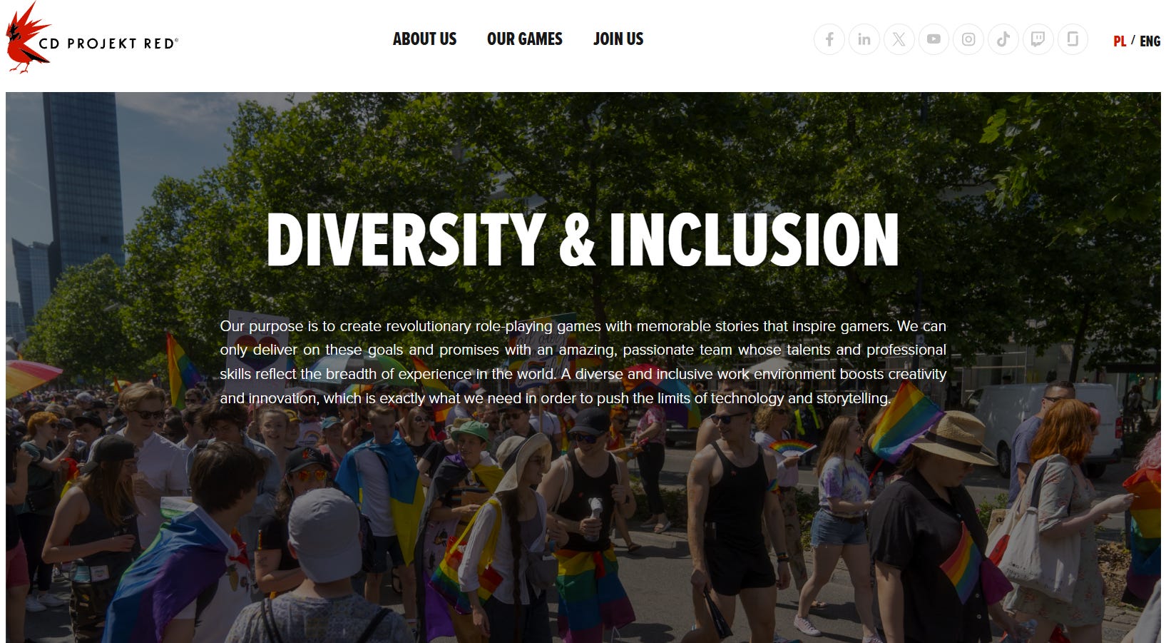 One of those initiatives is called The Diversity Charter. CD Projekt Red explains, “We’re among the companies that signed the Diversity Charter (Karta Różnorodności), a document committing to non-discrimination in the workplace as well as to the introduction of policies that create and promote diversity. We were also listed as one of the top employers in Poland in terms of managing diversity and inclusion.”