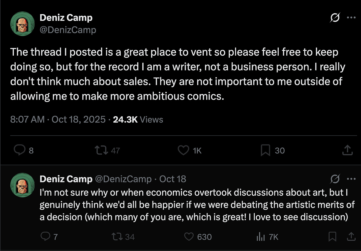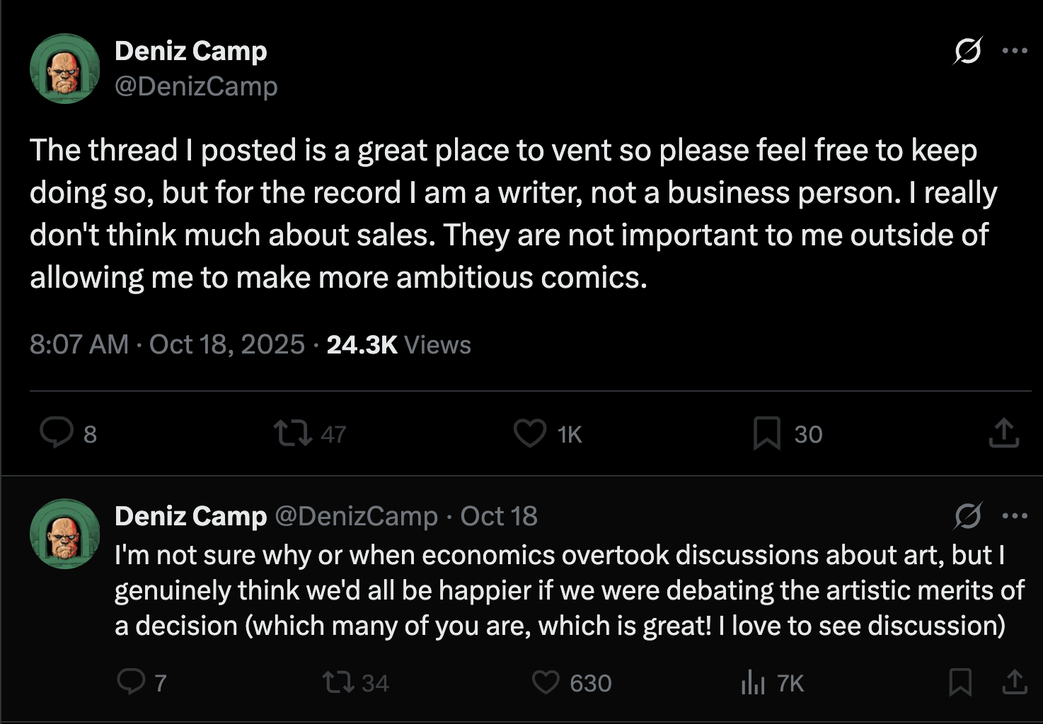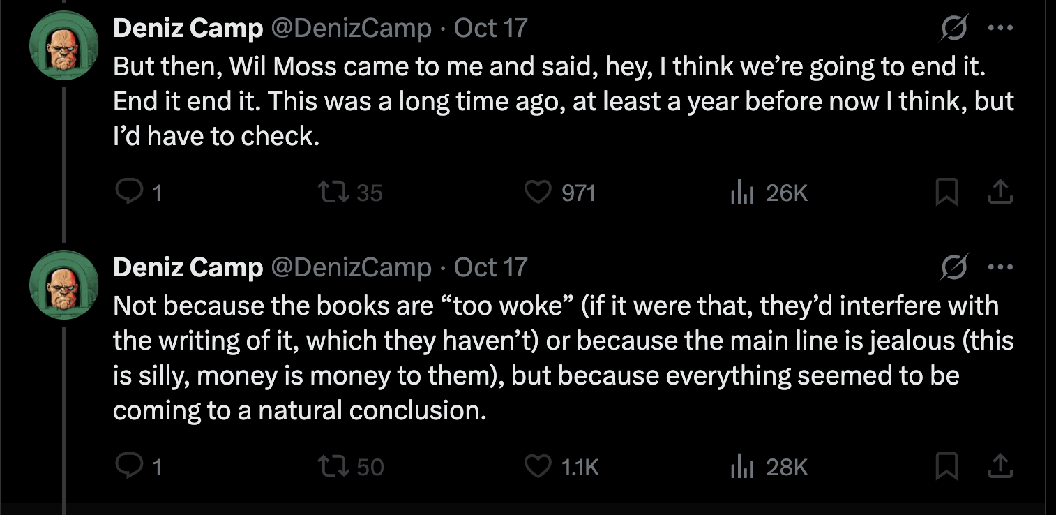 Odd that they’re giong to end the line with Ultimate Spider-Man (not written by Camp) being Marvel’s most successful work in years. However it is interesting that he had this moment to go off and let people know he was allowed to write the books as woke as he wanted.