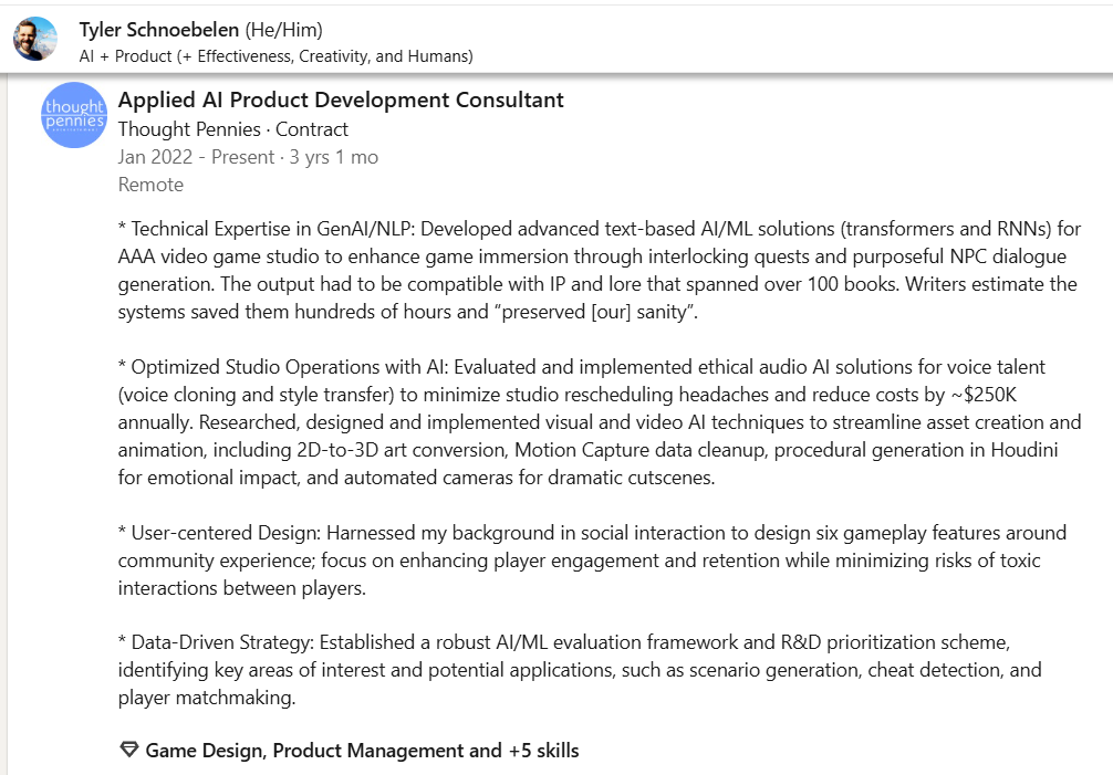 Applied AI Product Development Consultant Tyler Schnoebelen noted his work had “to be compatible with IP and lore that spanned over 100 books.”