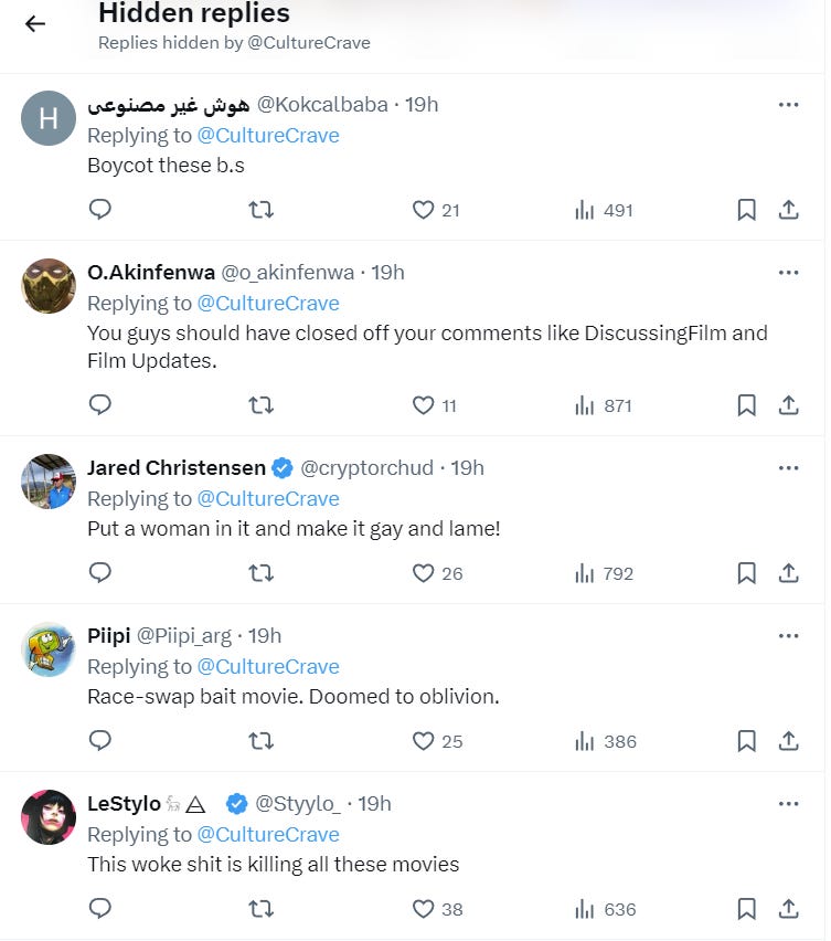 “Race-swap bait movie. Doomed to oblivion,” shared another.