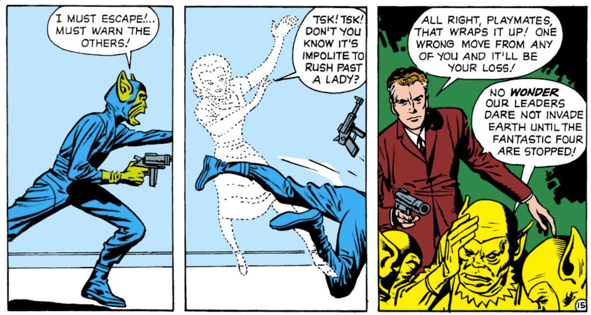 The idea that Sue Storm was a doormat in the early Fantastic Four comics is ridiculous. In the second issue of Fantastic Four, she turns invisible and breaks herself free from a federal detainment facility.