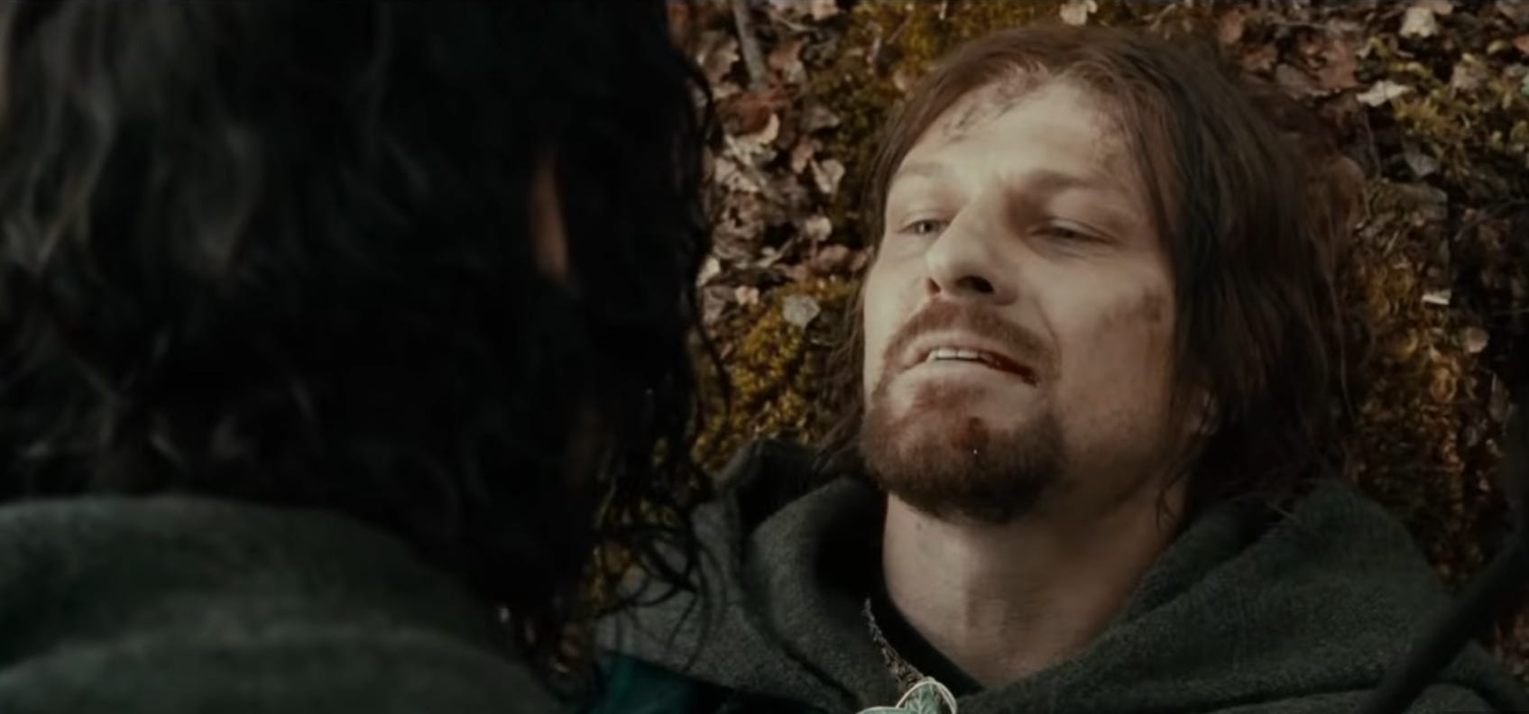 “No, Boromir, you fought bravely,” Aragorn tells him. “You have kept your honor.”