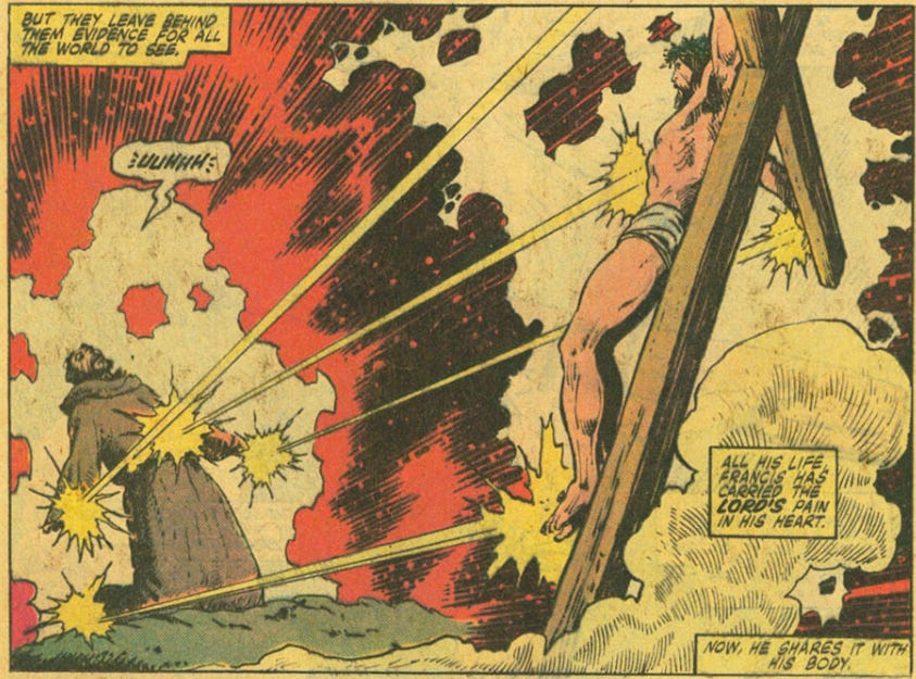 Back in 1982 Marvel Comics published Francis, Brother of the Universe with the story by father Roy Gasnick, a script by Mary Jo Duffy and art by John Buscema with finishes and color by Marie Severin. It came out on the 800th anniversary of St. Francis’ birth.
