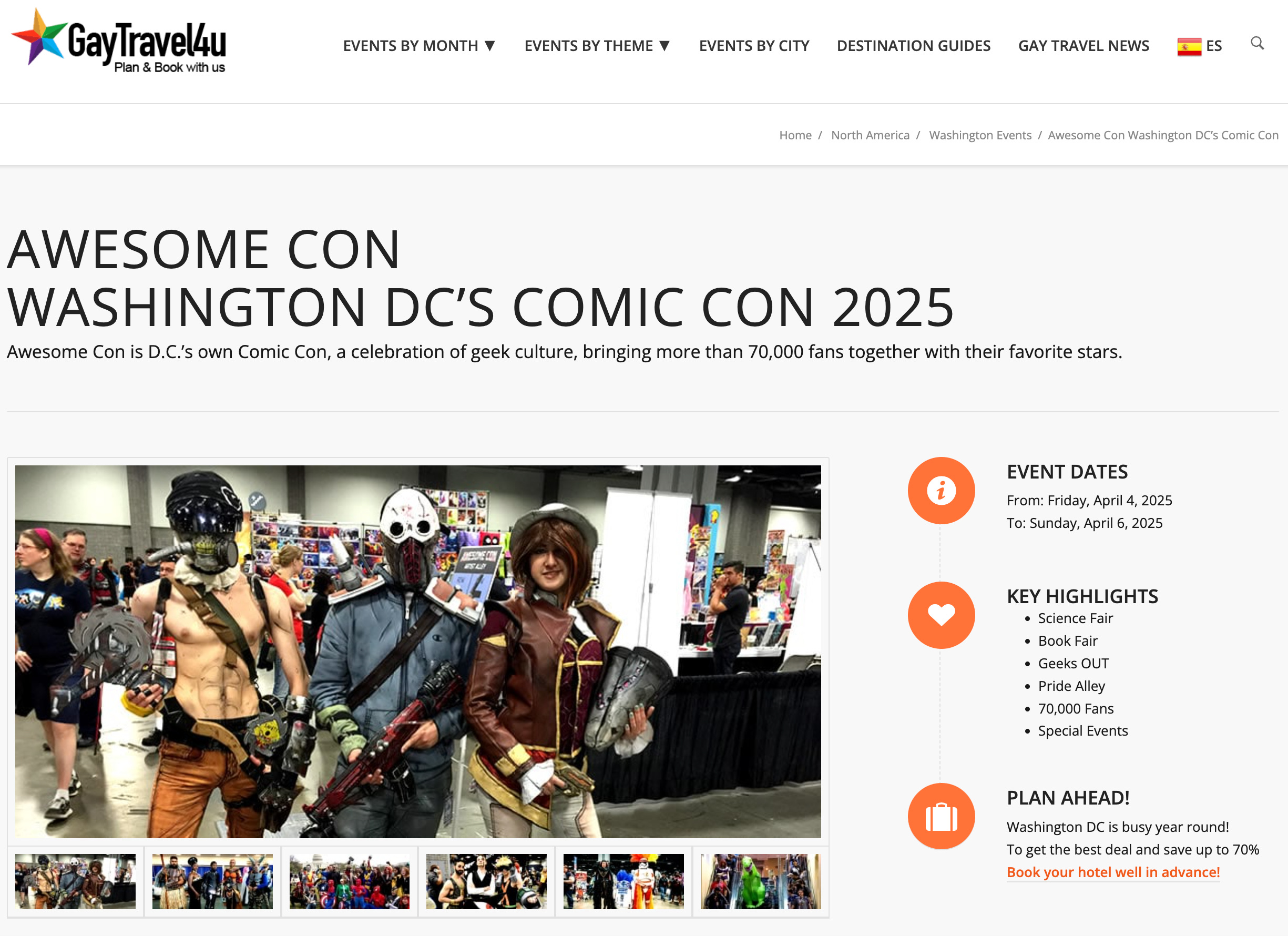 The convention is also prominently featured on the “GayTravel4U” website which promotes Awesome Con and appears to have influenced the programming to not be about comics or geek culture, but to be about these lifestyles in general.