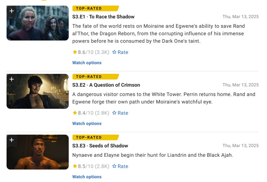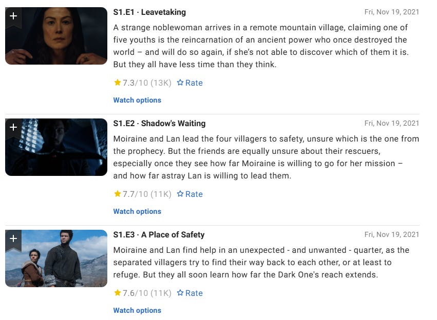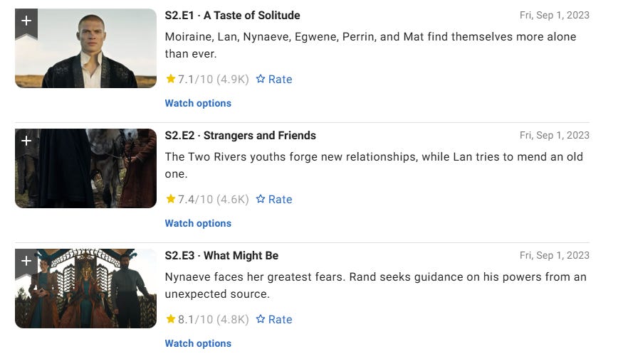 The total number of reviews on IMDb has also seen a significant drop. Season 1 Episode 1 had over 13,000 reviews. Episodes 2 and 3 had over 11,000 reviews.