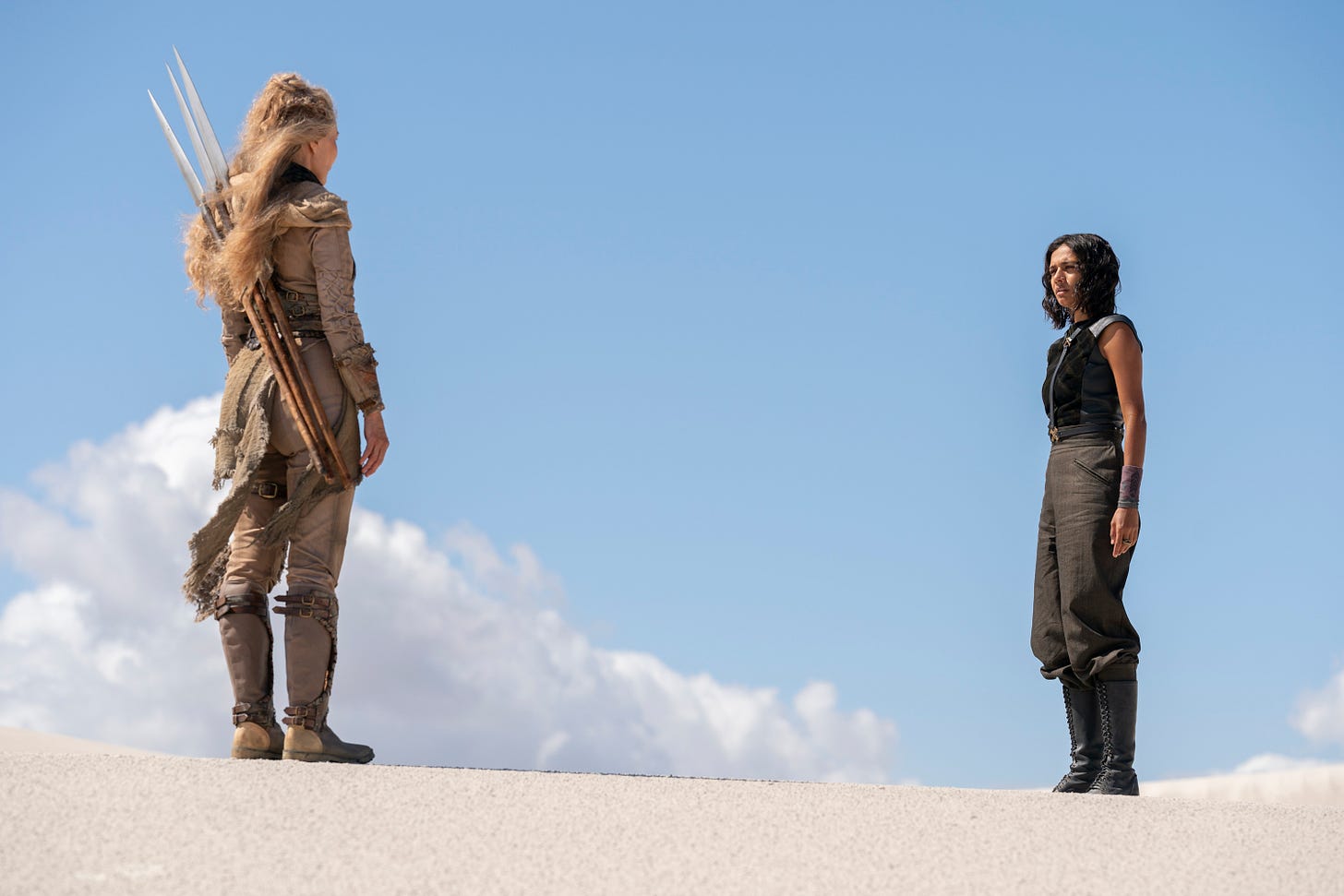 Next, he admitted to twisting the Aiel’s First-Sisters, “Then in season three, there’s this world that we go into. One of the most fully formed cultures in the books is the Aiel, and in the books, they always had this very fascinating idea, which was called First-Sisters. Two women sort of marry each other first and they may have relationships outside of that with men, they may not, but that core relationship in their life was with their first-sister. You see we have three first-sister relationships in season three, and they’re all different from each other.”
