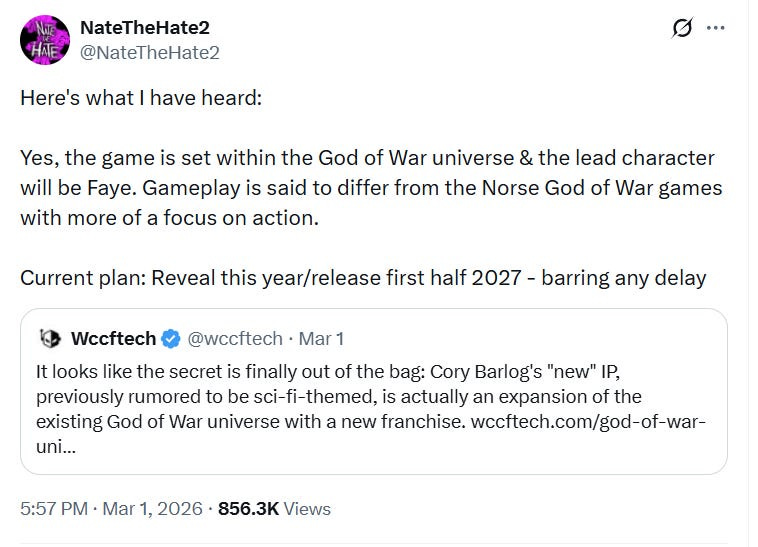 After this, leaker NateTheHate2 claimed that the company was developing a game “set within the God of War universe & the lead character will be Faye. Gameplay is said to differ from the Norse God of War games with more of a focus on action.”
