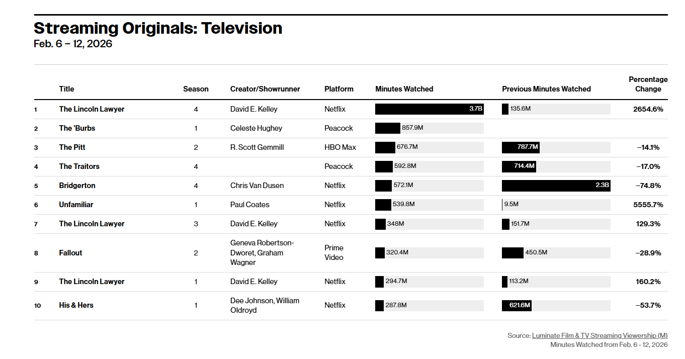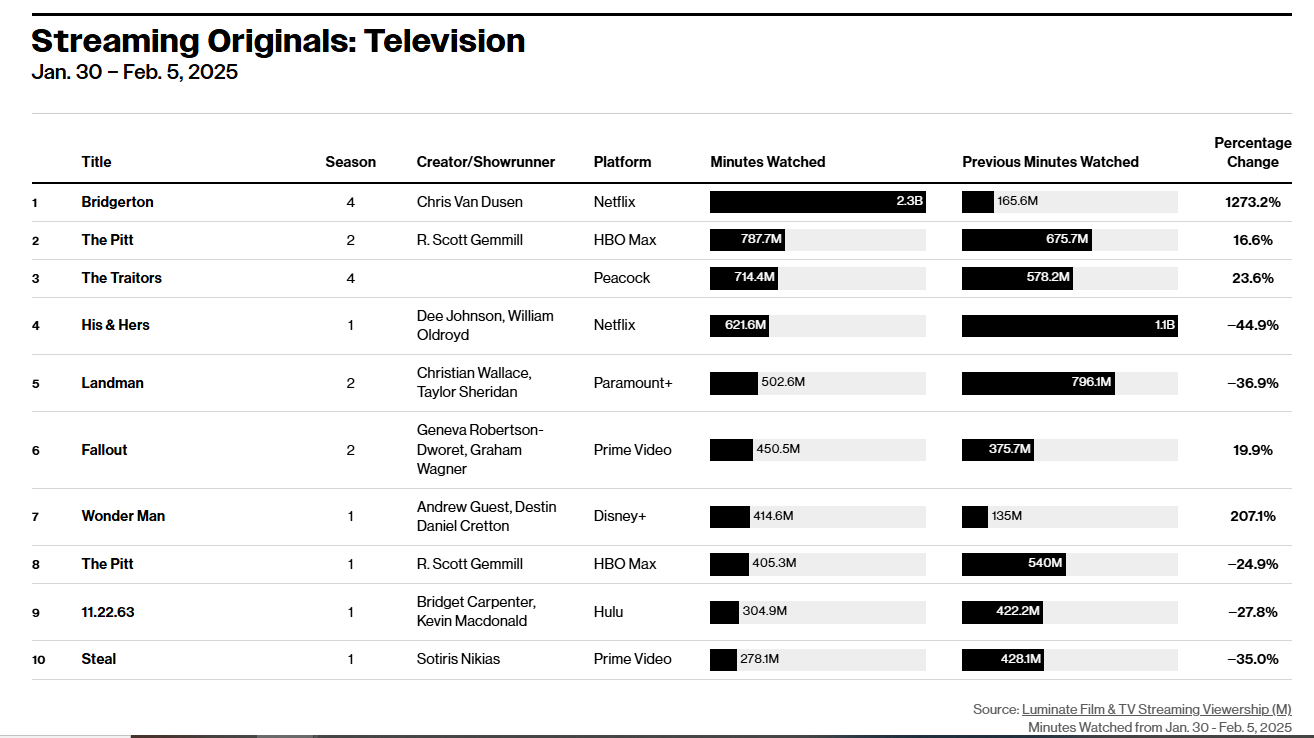 And now the show has completely fallen off Luminate’s top 10 chart doing worse than His & Hers, which brought in 287.8 million minutes viewed.