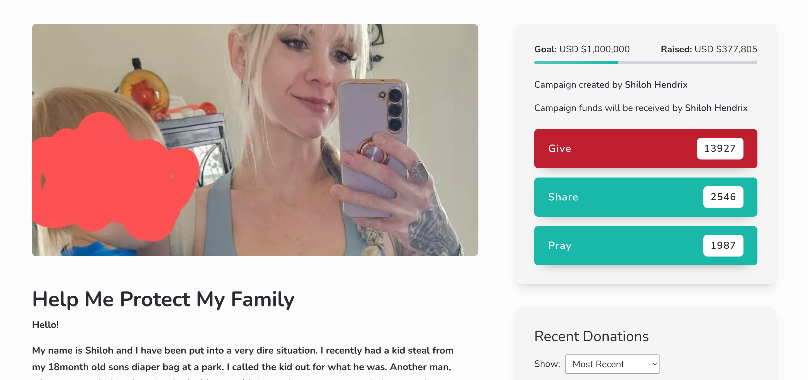 My name is Shiloh and I have been put into a very dire situation. I recently had a kid steal from my 18month old sons diaper bag at a park. I called the kid out for what he was. Another man, who we recently found out has had a history with law enforcement, proceeded to record me and follow me to my car. He then posted these videos online which has caused my family, and myself, great turmoil. My SSN has been leaked. My address, and phone number have been given out freely. My family members are being attacked. My eldest child may not be going back to school. Even where I exercise has been exposed.